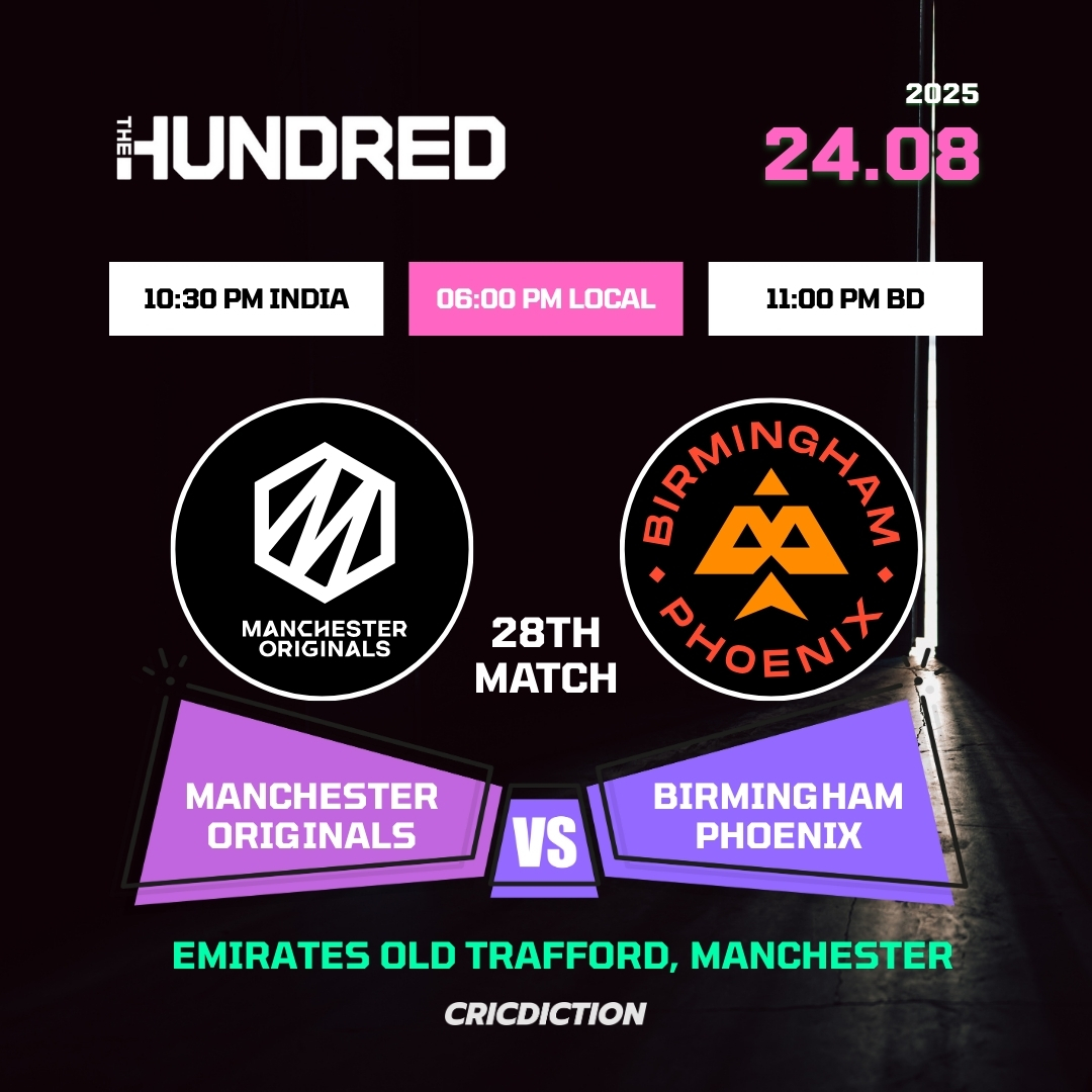 Match Preview – Manchester Originals vs Birmingham Phoenix( MO vs BP ), Dream11 Prediction, The Hundred, 28th Match. Who Will Win, On August 24, 2025