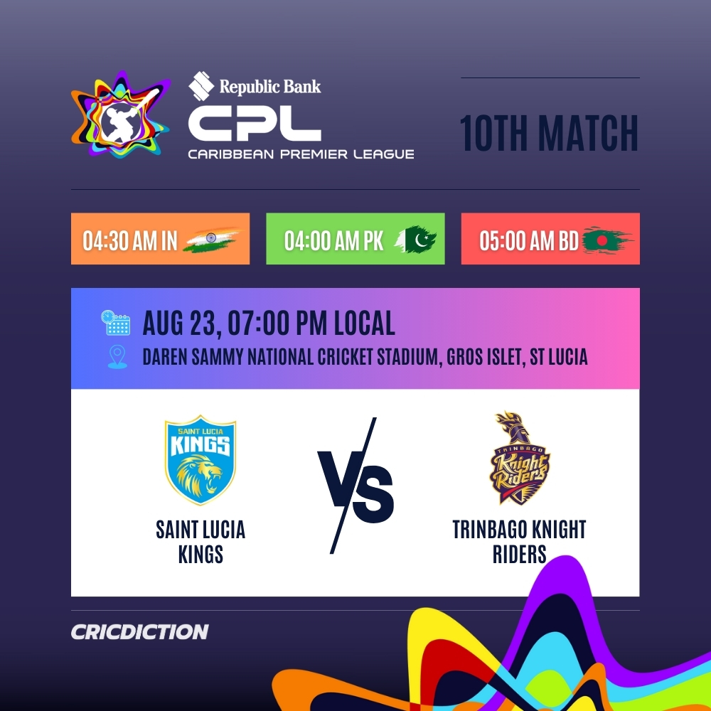Match Preview – Saint Lucia Kings vs Trinbago Knight Riders( SLK vs TKR ), Dream11 Prediction, CPL T20, 10th Match. Who Will Win, On August 23, 2025