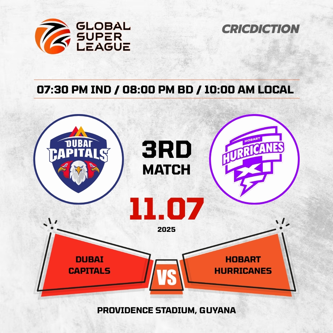 Dubai Capitals Set to Clash with Hobart Hurricanes in GSL Match 3 The highly anticipated Global Super League (GSL) 2025 […]