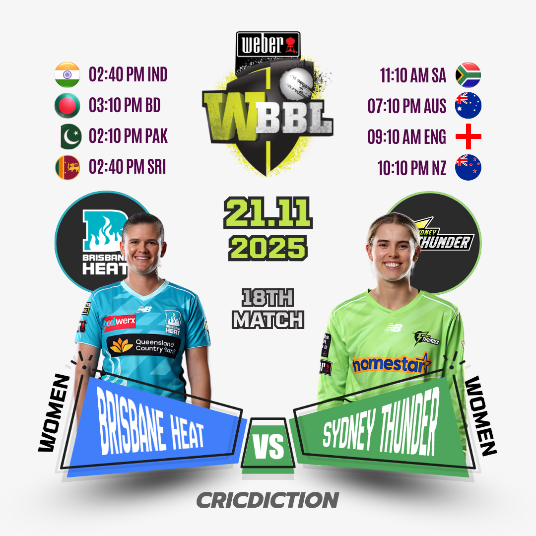 Brisbane Heat Women to Face Sydney Thunder Women in WBBL 2025 Match On Friday, November 21, Brisbane Heat Women (BH […]
