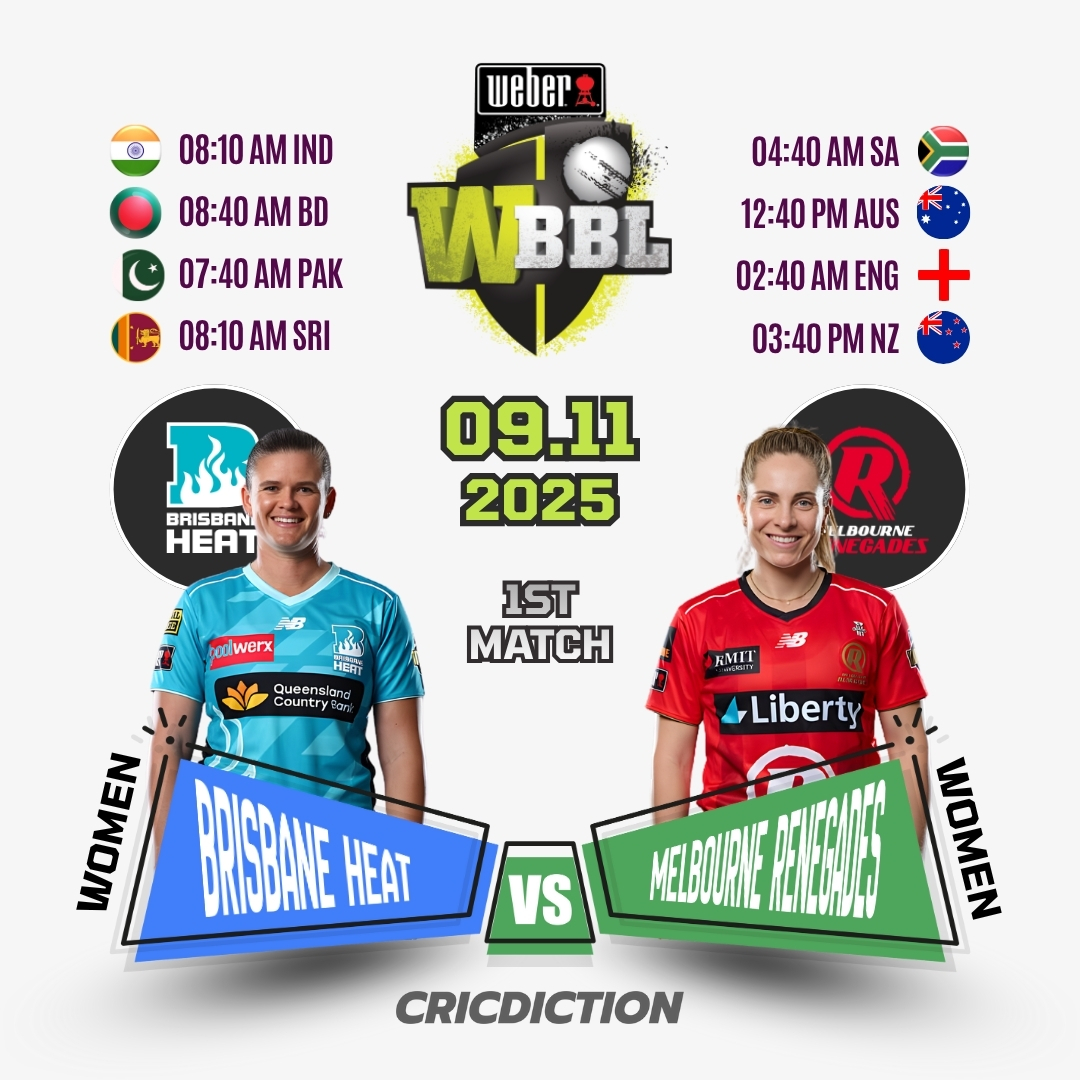 Match Preview – Brisbane Heat Women vs Melbourne Renegades Women( BH-W vs MR-W ), Dream11 Prediction, 1st Match, WBBL 2025. Who Will Win, On November 09, 2025