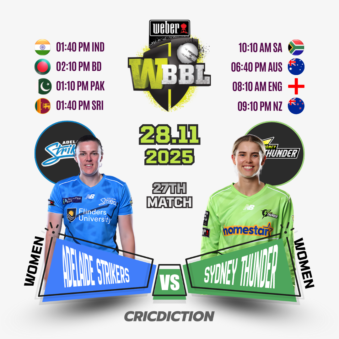 Match Preview – Adelaide Strikers Women vs Sydney Thunder Women( AS-W vs ST-W ), Dream11 Prediction, 27th Match, WBBL 2025. Who Will Win, On November 28, 2025