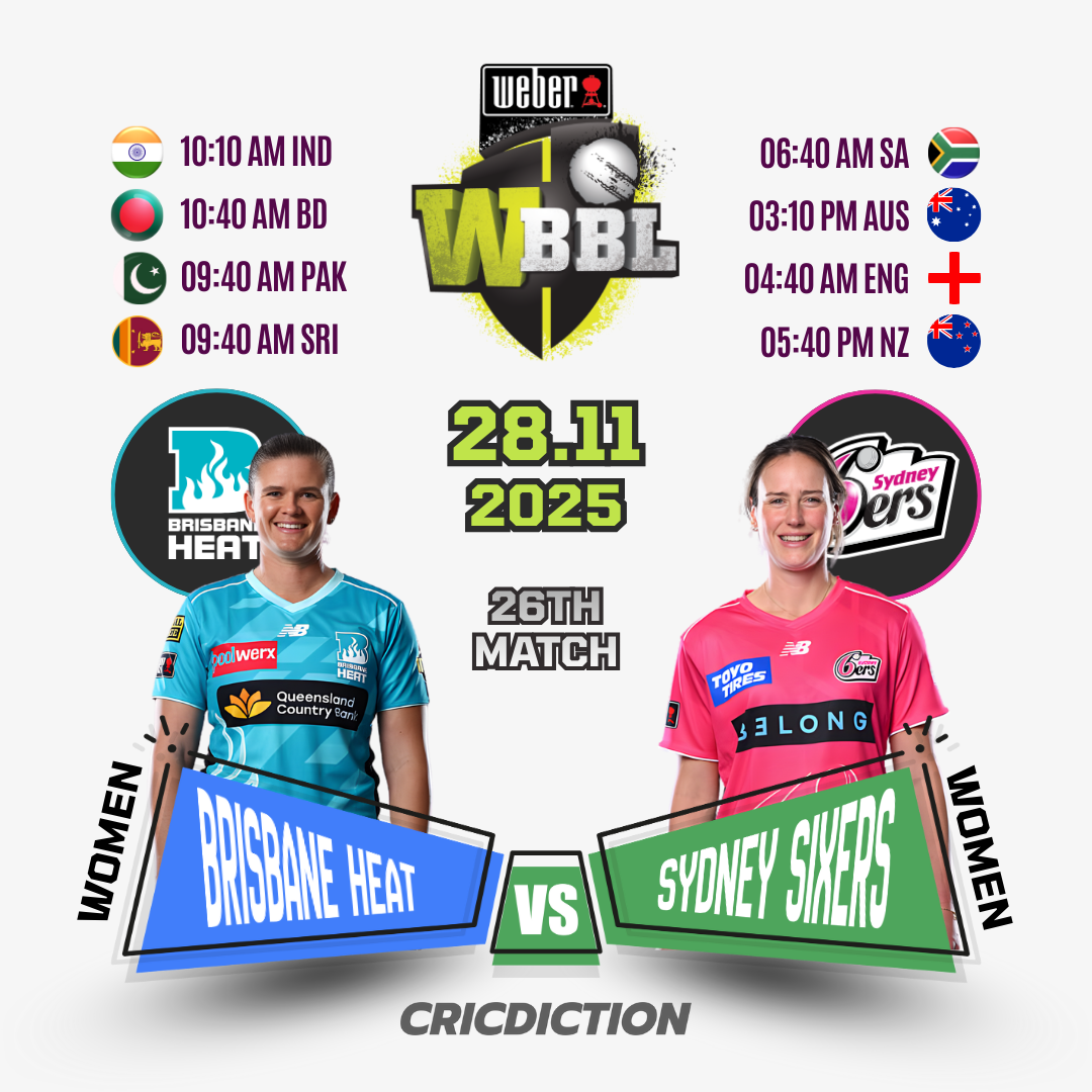 Match Preview – Brisbane Heat Women vs Sydney Sixers Women( BH-W vs SS-W ), Dream11 Prediction, 26th Match, WBBL 2025. Who Will Win, On November 28, 2025