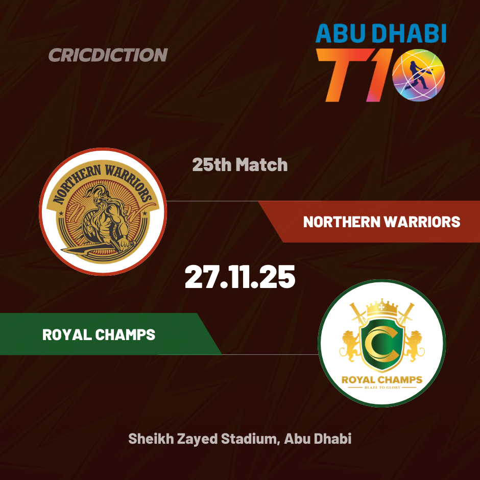 Match Preview –Northern Warriors vs Royal Champs( NW vs RC ), Dream11 Prediction, Abu Dhabi T10, 25th Match. Who Will Win, On November 27, 2025