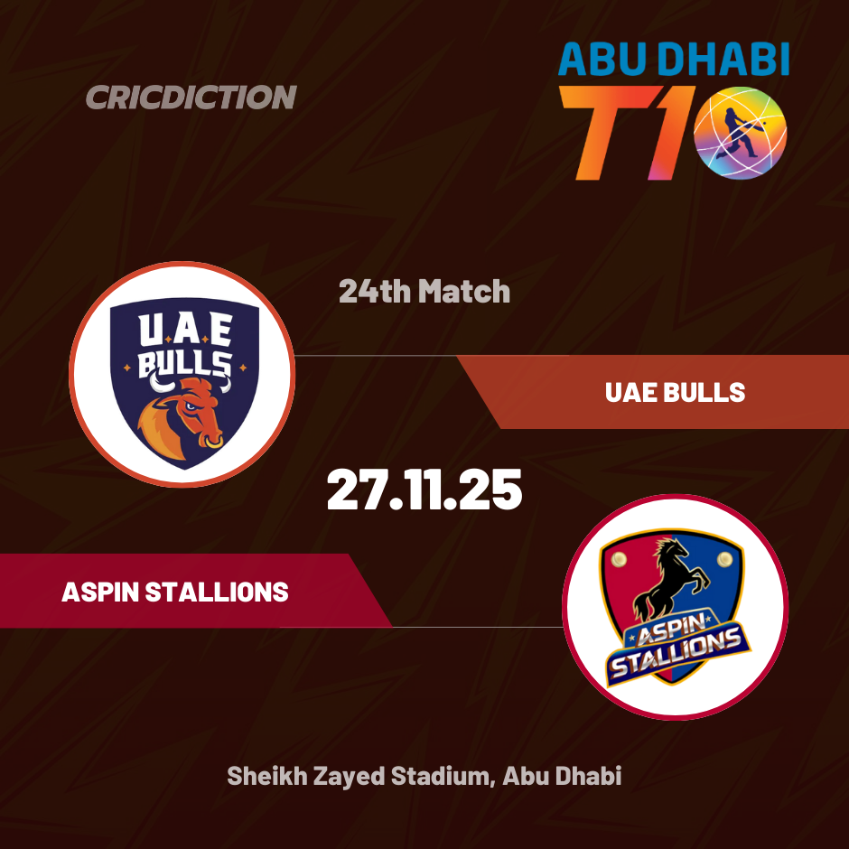 Match Preview – UAE Bulls vs Aspin Stallions( UB vs ASP ), Dream11 Prediction, Abu Dhabi T10, 24th Match. Who Will Win, On November 27, 2025
