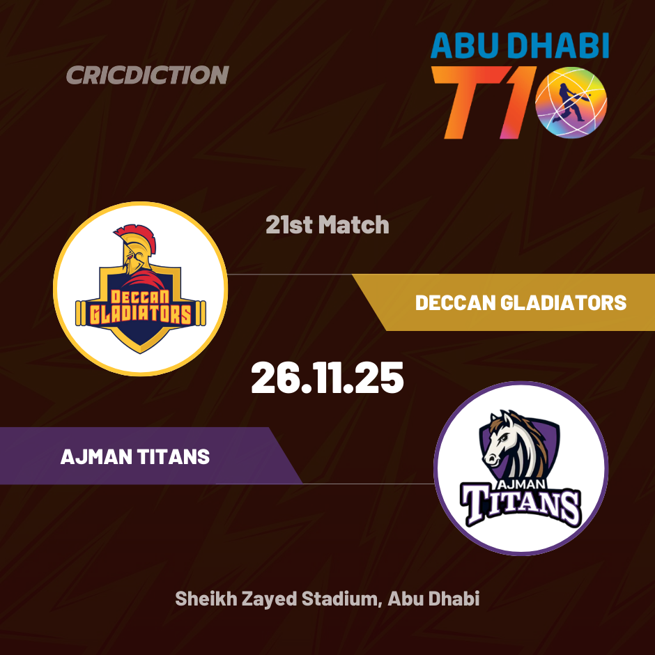 Deccan Gladiators to Face Ajman Titans in Abu Dhabi T10 Clash Match Preview: The upcoming match between Deccan Gladiators and […]