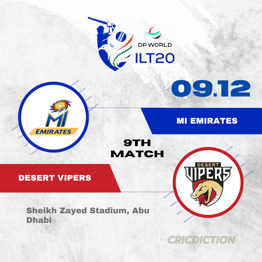 The highly anticipated Match No. 8 of the International League T20 (ILT20) 2025-26 is scheduled to take place at the Dubai International Cricket Stadium on Monday, December 8. The Desert Vipers (DV) will face off against the Gulf Giants (GG) in what promises to be an exciting encounter between two teams on winning streaks.