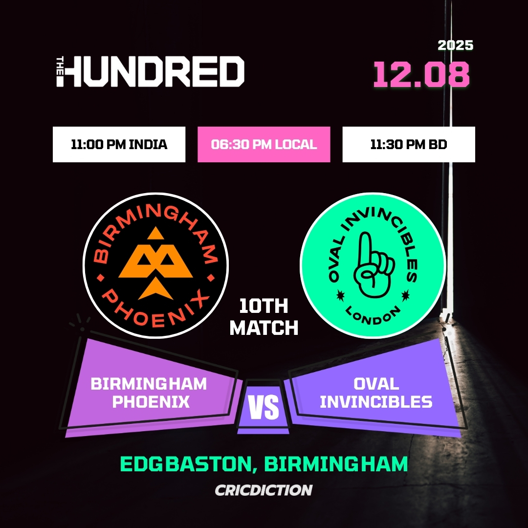 **Match:** Birmingham Phoenix vs Oval Invincibles (BP vs OI), 10th Match, The Hundred Men’s Competition 2025
