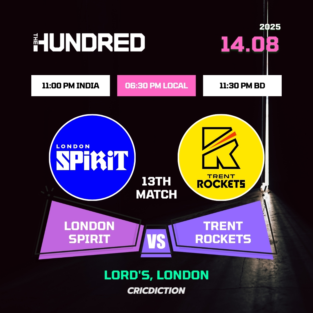 London Spirit is gearing up to take on Trent Rockets in the 13th match of The Hundred Men’s Competition 2025. The highly anticipated match is scheduled to be held at Lord’s in London on Thursday, August 14.