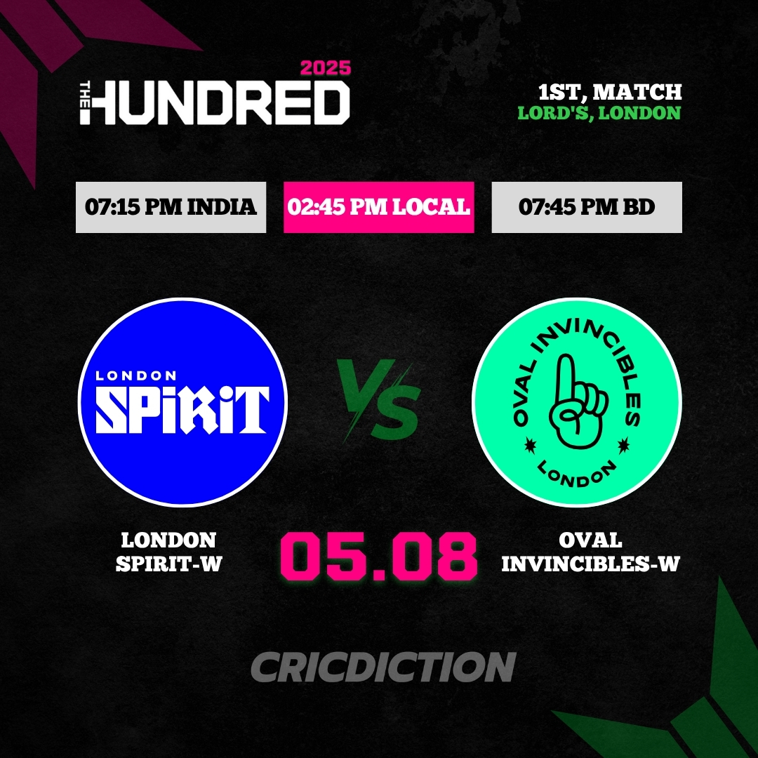 The highly anticipated clash between London Spirit Women and Oval Invincibles Women is set to kick off The Hundred Women’s Competition 2025 at Lord’s on August 5th. The match is scheduled to begin at 01:45 pm GMT / 07:15 pm IST / 02:45 pm local time.