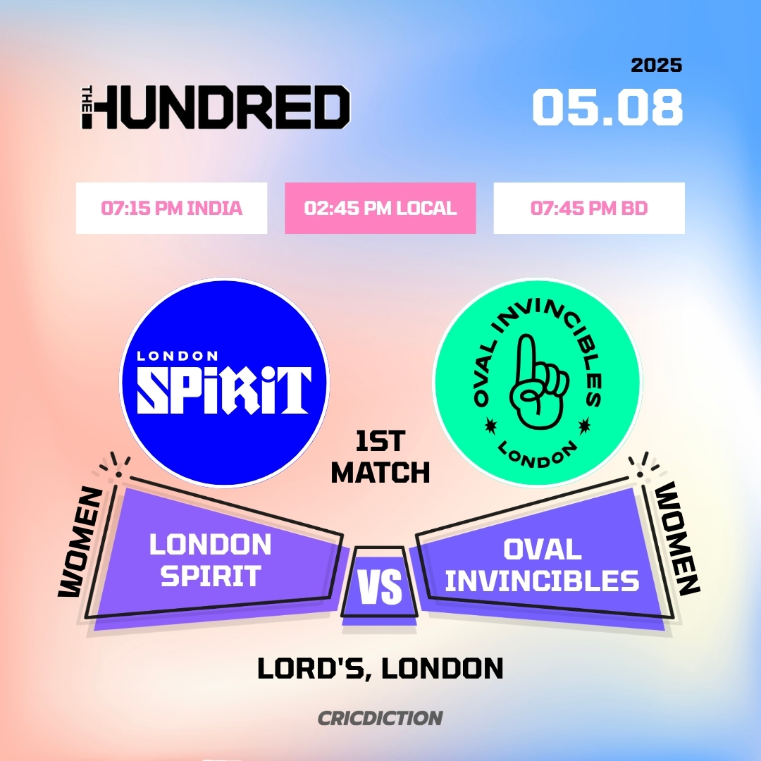 Both teams have strong all-rounders and power hitters, promising an exciting and high-scoring match. The history between London Spirit and Oval Invincibles adds an extra level of intensity to this clash, making it a must-watch for fans of The Hundred.