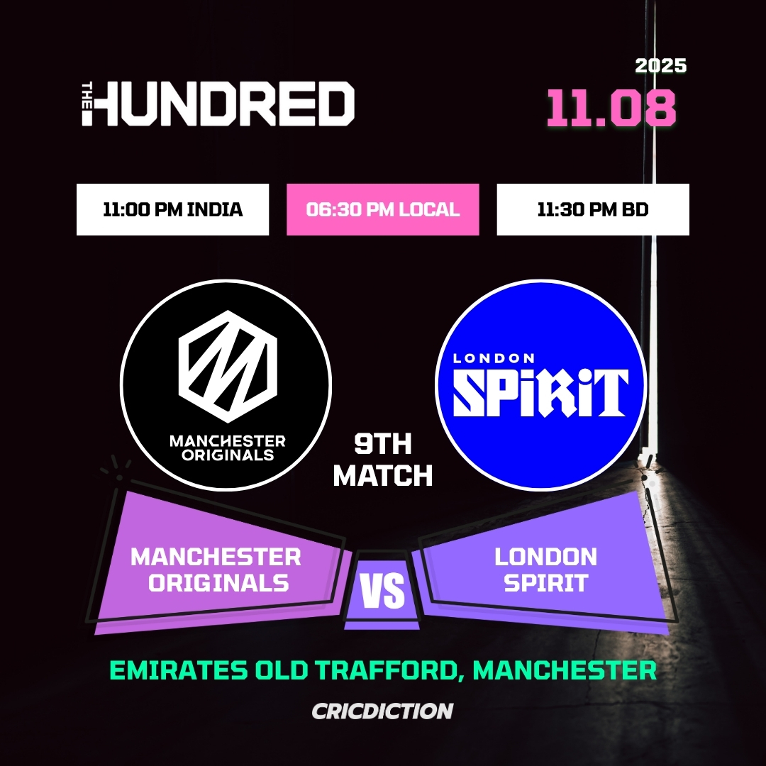 Manchester Originals are set to clash with London Spirit in the upcoming match of The Hundred Mens Competition 2025. The match is scheduled to take place at the Emirates Old Trafford on Monday, August 11, at 05:30 pm GMT.