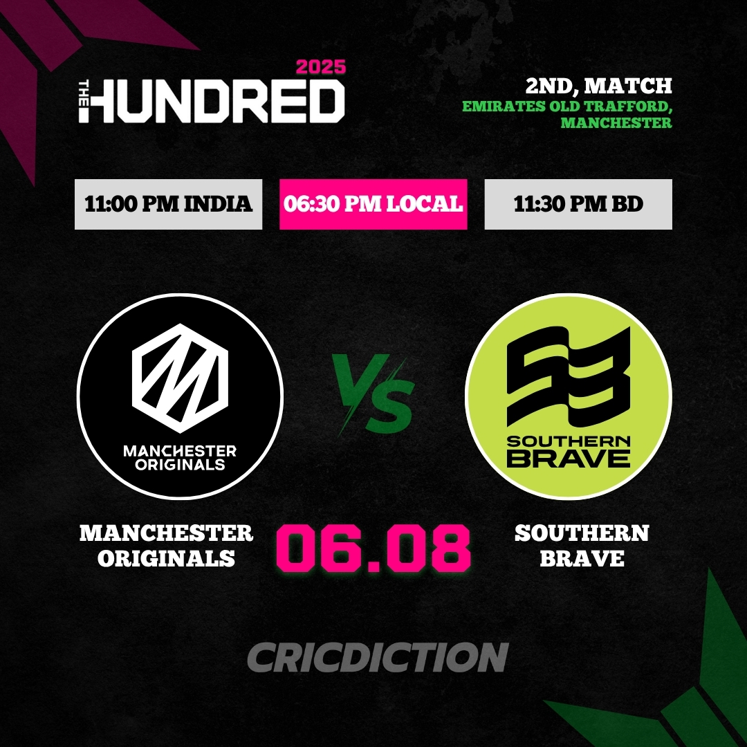 Given the strengths of both teams and the quality of players on display, the match between Manchester Originals and Southern Brave is expected to be closely contested. While Southern Brave may have the edge with their strong bowling attack and depth in batting, Manchester Originals will be looking to make a statement early in the tournament with their revamped lineup.