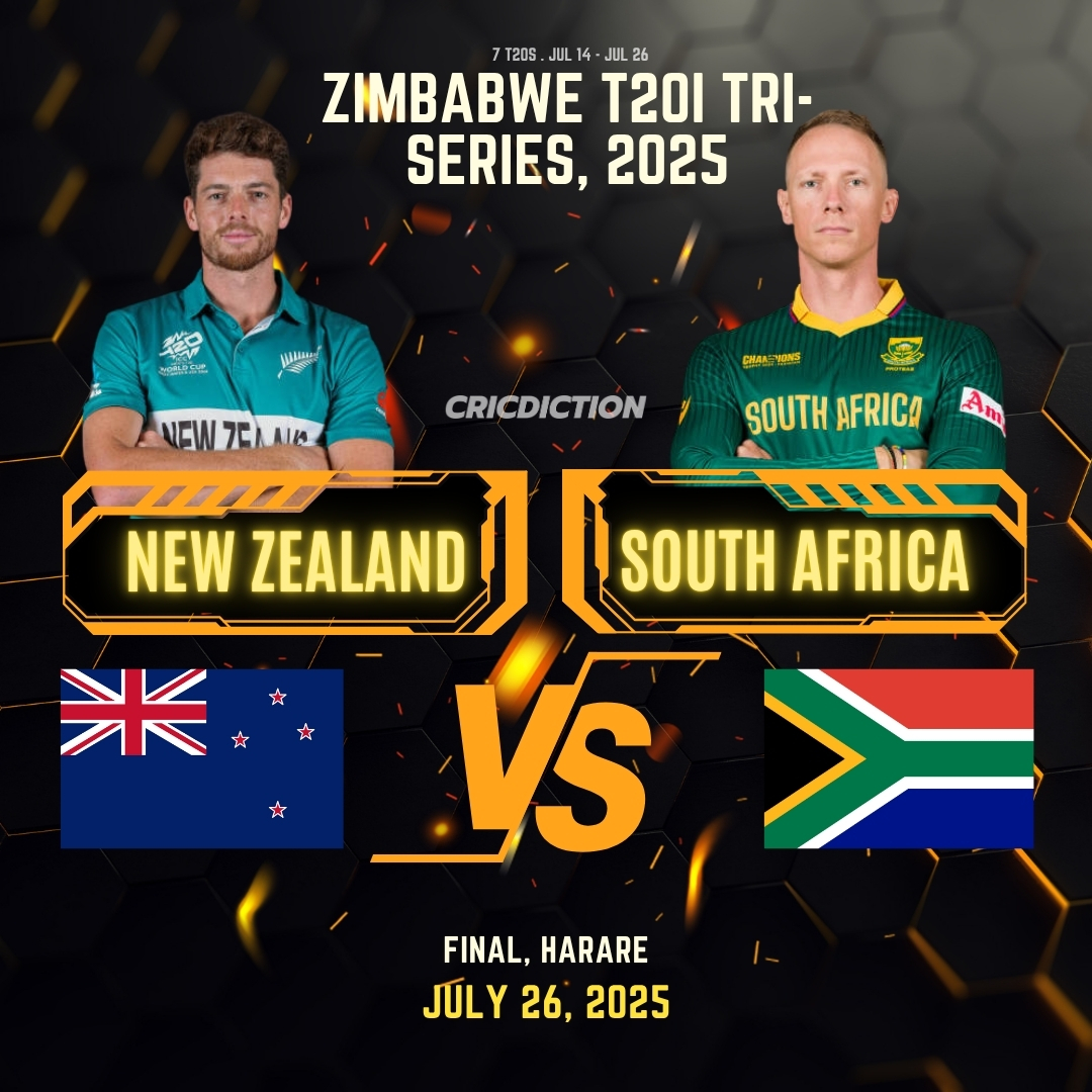 The final match of the South Africa tour of Zimbabwe, 2025 will see New Zealand taking on South Africa at the Harare Sports Club on July 26. New Zealand has been dominant in the tri-series so far, winning all four of their group stage matches.