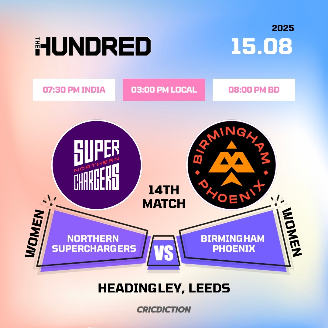 Northern Superchargers Women( NSC-W ) is set to face Birmingham Phoenix Women( BP-W ) in their 14th match during The Hundred Womens Competition 2025. This match is scheduled to take place at the The Headingley on Friday, August 15.