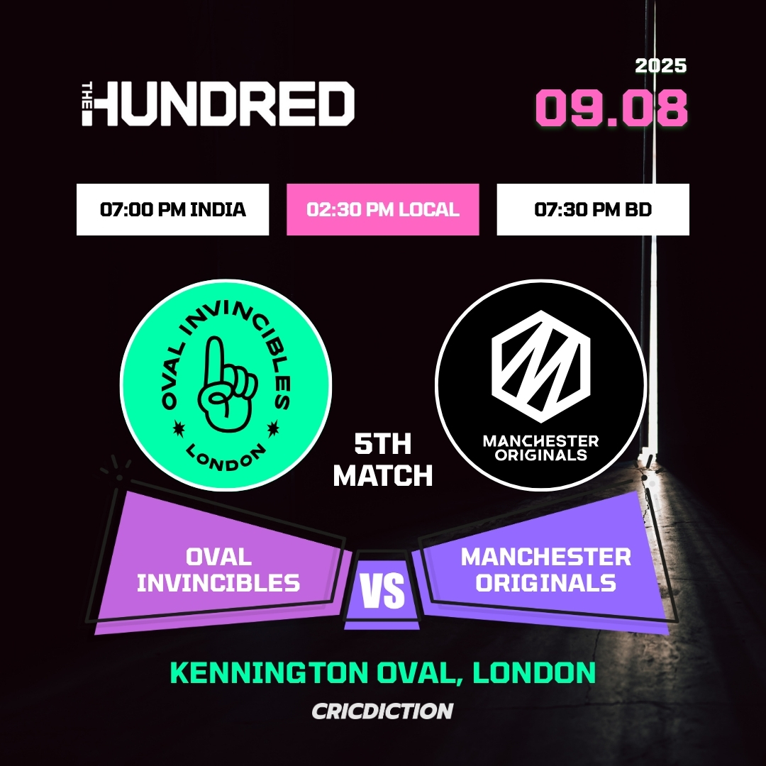 Stay tuned for more updates on the Oval Invincibles vs Manchester Originals match in The Hundred Men’s Competition 2025.
