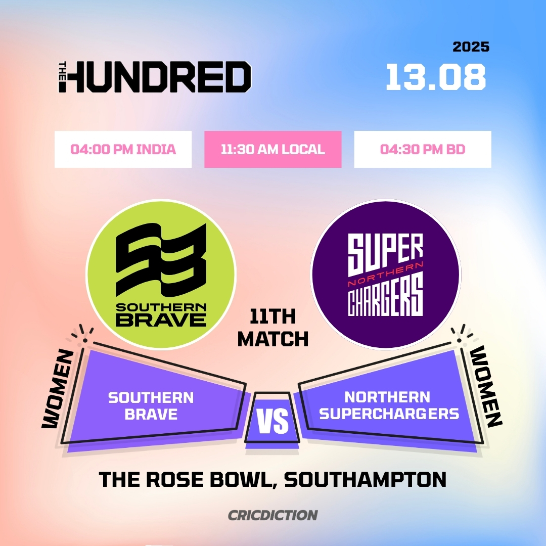 The upcoming 11th match of The Hundred Women’s Competition 2025 will see Southern Brave Women (SB-W) take on Northern Superchargers Women (NSC-W) at The Rose Bowl in Southampton on Wednesday, August 13. The clash between these two talented teams promises to be an exciting and closely contested affair.