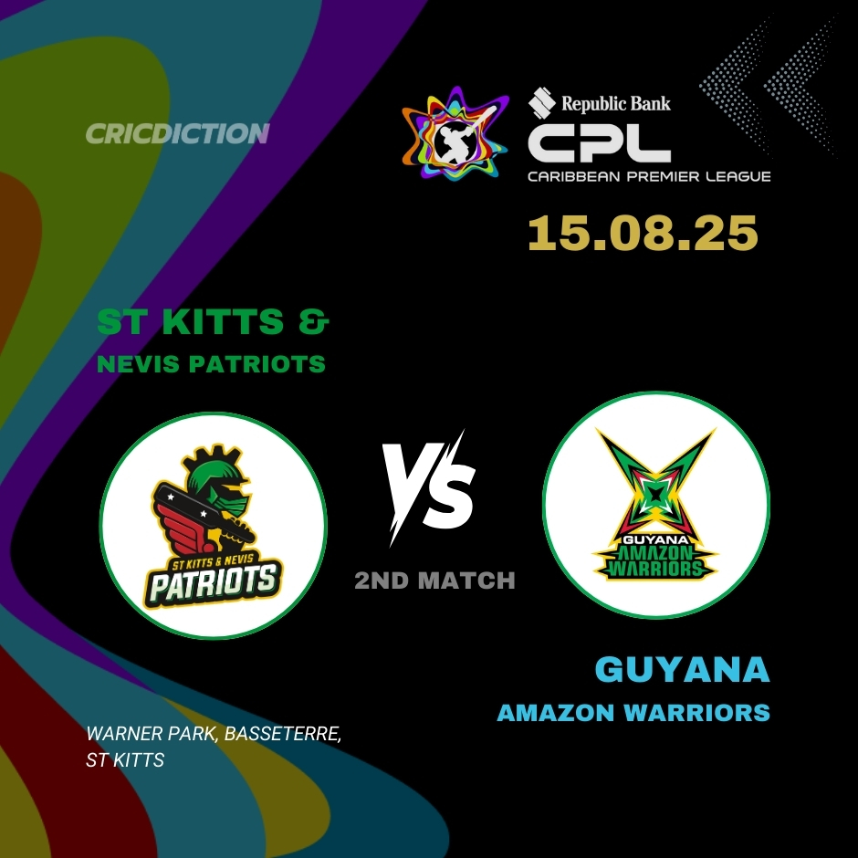 St Kitts and Nevis Patriots( STKNP ) is set to face Guyana Amazon Warriors( GAW ) in their 2nd match during The Caribbean Premier League 2025. This match is scheduled to take place at the Warner Park on Friday, August 15.