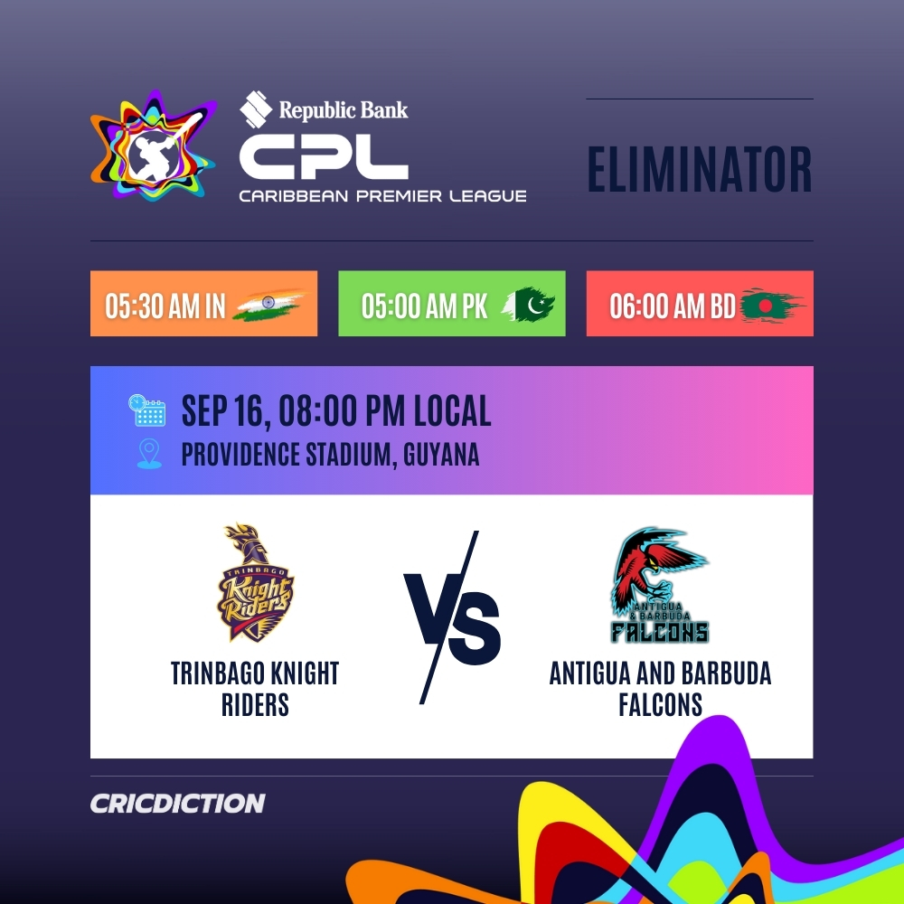As the Caribbean Premier League 2025 reaches its climax, the Trinbago Knight Riders are set to take on the Antigua And Barbuda Falcons in a high-stakes Eliminator match. Scheduled to be held at the Providence Stadium on September 16, this clash is expected to be a thrilling encounter between two competitive teams.