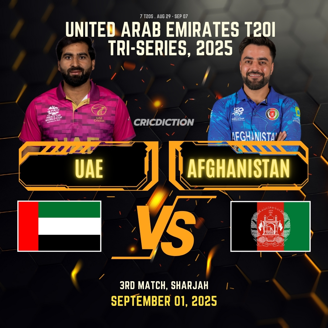 The United Arab Emirates will face off against Afghanistan in the 3rd match of the United Arab Emirates T20I Tri-Series on September 01 at 03:00 pm GMT. The match will take place at the iconic Sharjah Cricket Stadium in Sharjah, promising an exciting showdown between the two teams.