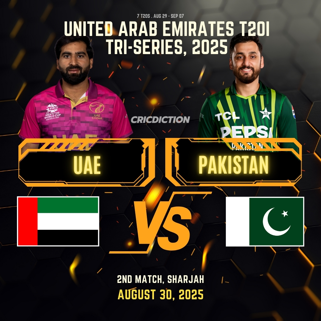 So mark your calendars for August 30 and get ready for a cricketing spectacle at the Sharjah Cricket Stadium. Stay tuned for all the live action, updates, and post-match analysis as United Arab Emirates takes on Pakistan in what promises to be an enthralling contest.