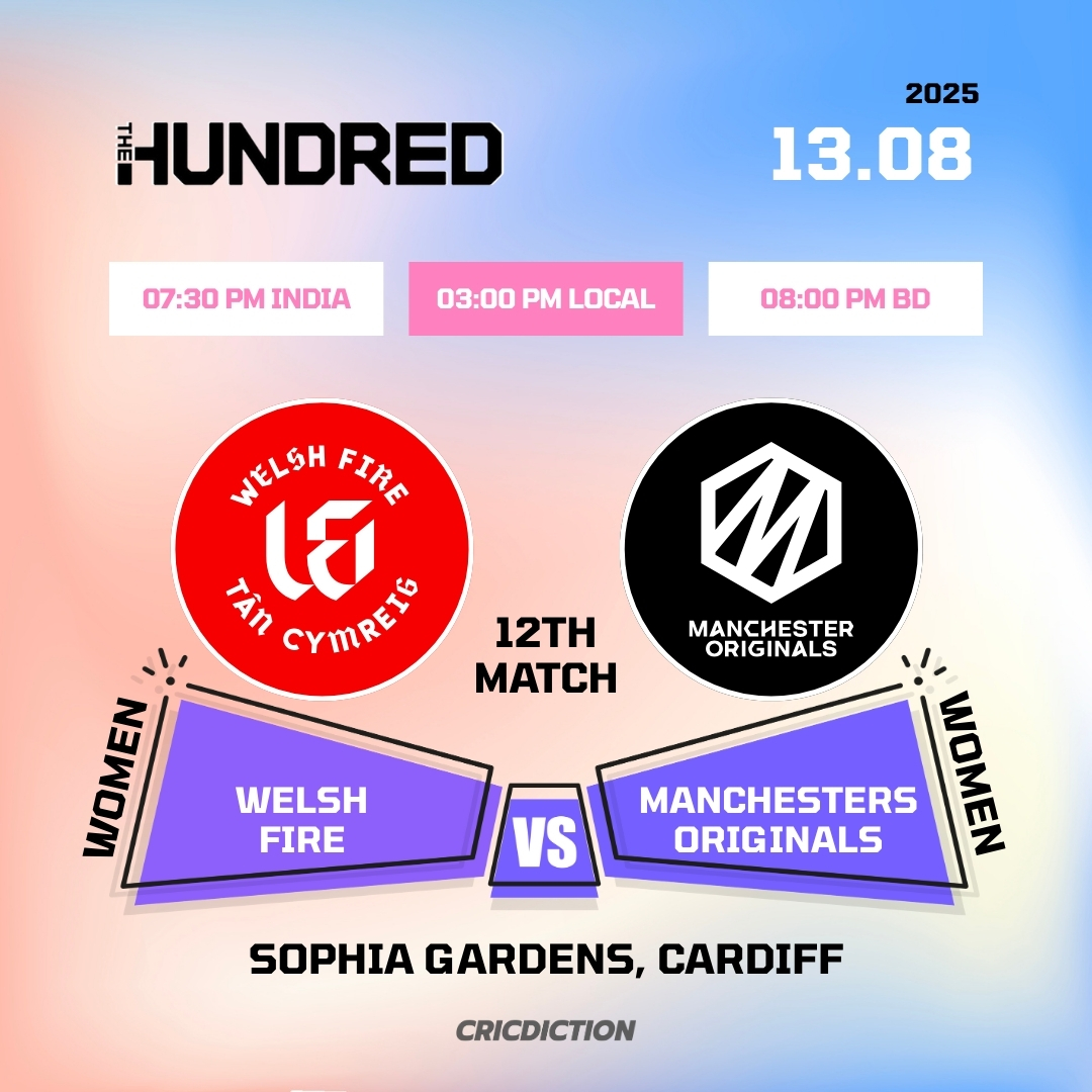 Welsh Fire Women (WF-W) is gearing up to take on Manchester Originals Women (MO-W) in their 12th match of The Hundred Womens Competition 2025. The exciting showdown is set to happen at Sophia Gardens on Wednesday, August 13.