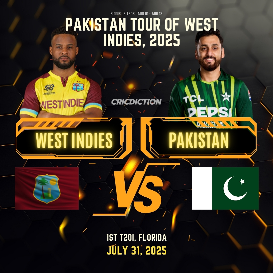 West Indies( WI ) is set to face Pakistan( PAK ) in their 1st T20 match during the India tour of England, 2025. This match is scheduled to take place at the Central Broward Regional Park Stadium Turf Ground on Thursday, July 31.