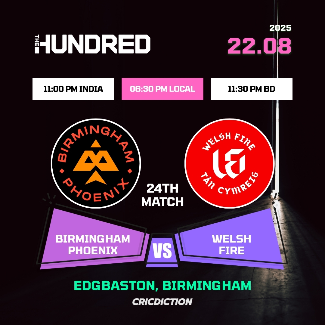 Birmingham Phoenix Women to Take on Welsh Fire Women in The Hundred Women’s Competition 2025 The upcoming 24th match of […]