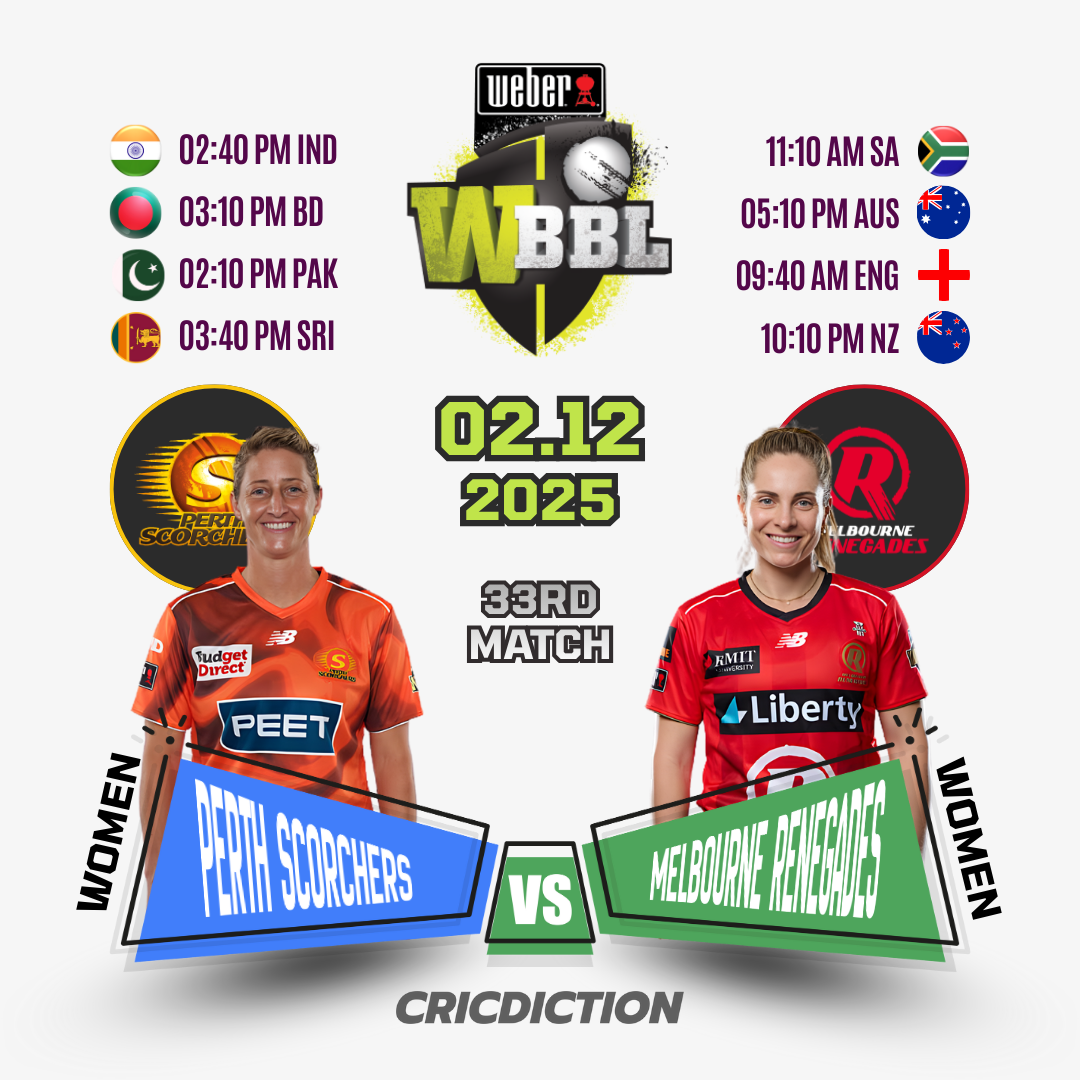 Match Preview – Perth Scorchers Women vs Melbourne Renegades Women( PS-W vs MR-W ), Dream11 Prediction, 33rd Match, WBBL 2025. Who Will Win, On December 2, 2025