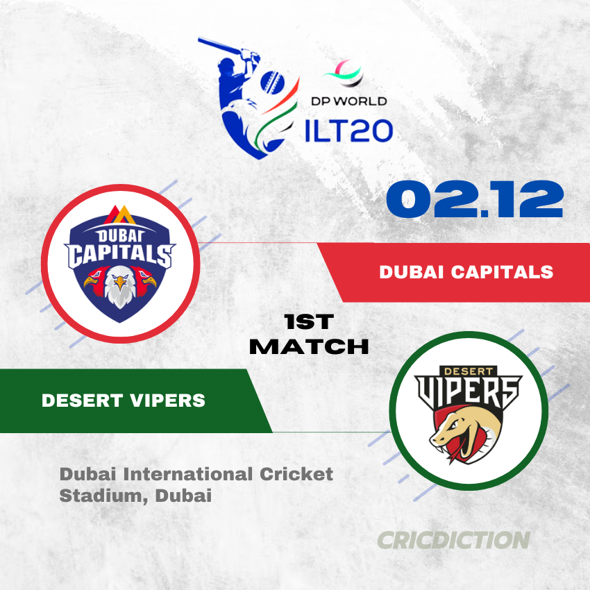 Match Preview – Dubai Capitals vs Desert Vipers( DC vs DV ), Dream11 Prediction, 1st Match, ILT20. Who Will Win, On December 02, 2025
